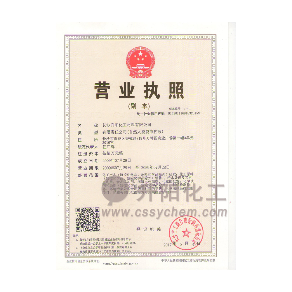 長沙升陽化工材料有限公司成立于2009年,是一家已經(jīng)擁有10年化工原料經(jīng)營歷史的企業(yè)。我們本著“服務(wù)至上,以誠為本”的原則,為廣大的新老客戶提供最優(yōu)質(zhì)的產(chǎn)品、最便捷的服務(wù)。歷經(jīng)10多年的積淀與發(fā)展,現(xiàn)已成長為湖南省頗具規(guī)模的專業(yè)化學(xué)品服務(wù)供應(yīng)商之一。?公司集貿(mào)易,科研,倉儲(chǔ),物流為